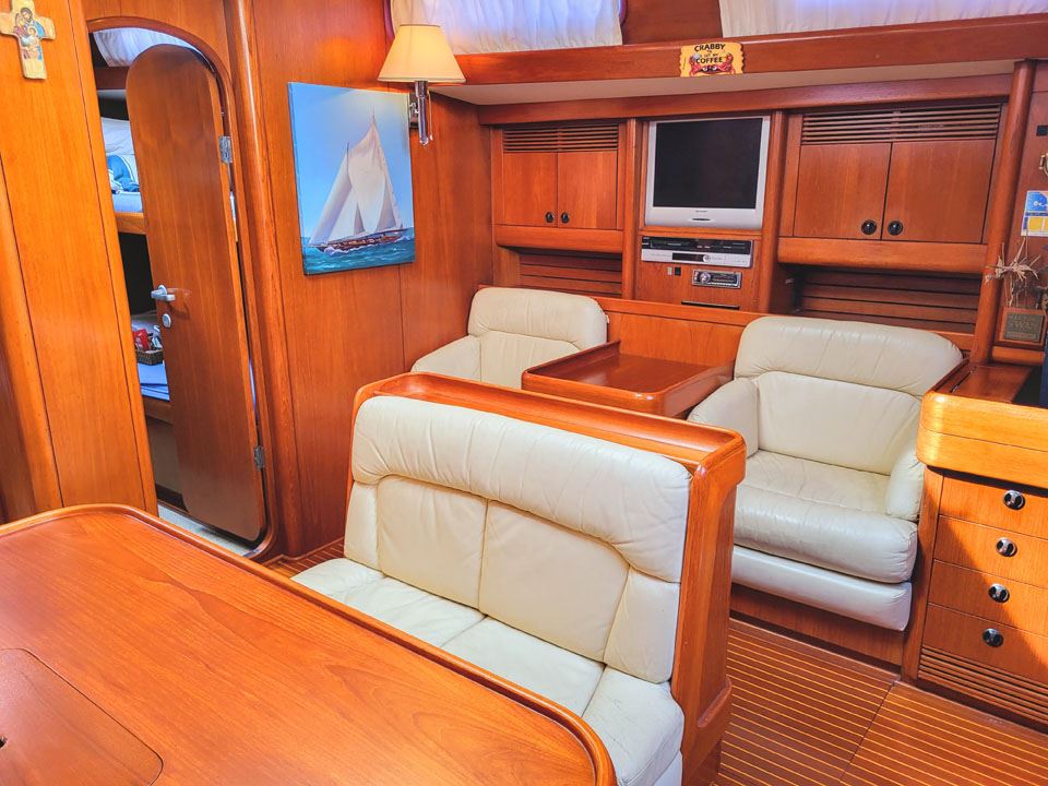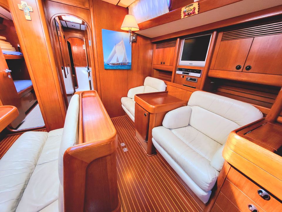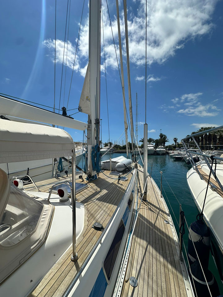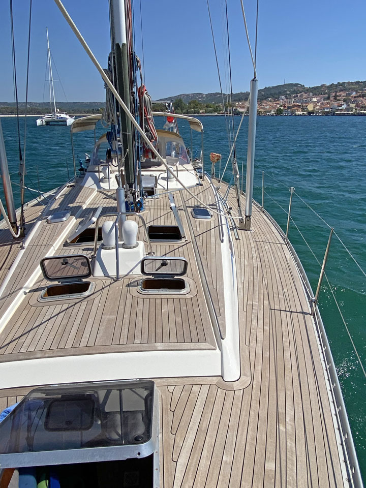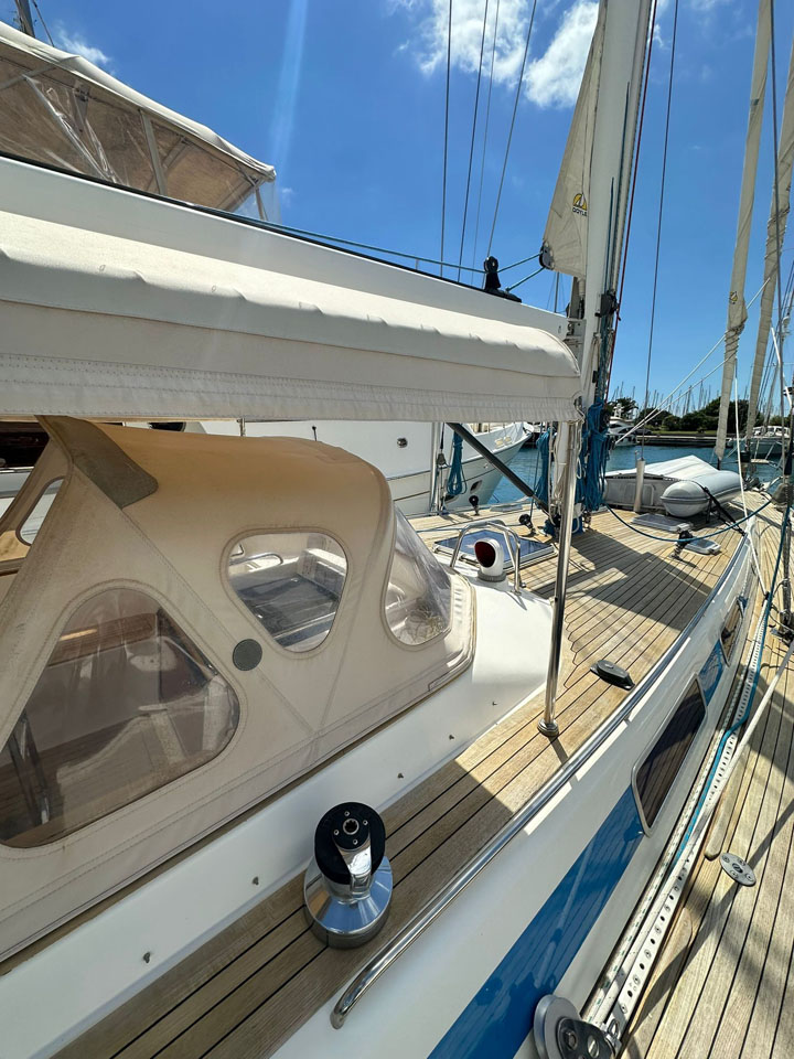 During the current ownership, she sailed the Med, to the Caribbean with the ARC in 2008 and crossed again 2013. In 2014 she cruised the USA east coast. She was each time shipped back from the Caribbean to Italy and was also shipped from Newport to the Caribbean. Furthermore, she spent 5 years in the Caribbean stored ashore under her winter cover for 10 months per year until 2018. Then, when back in the Med, she has again been stored ashore with her winter cover on for 9-10 month per year from 2019 to 2023.