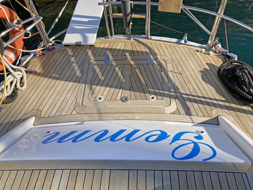 She has safely (and swiftly) carried us around the Med, across the Atlantic, and around the Caribbean, as well as a lovely cruise up the eastern coast of America. We have used her privately (same as her second owner) and have had no accidents. Most recently, we based her in Greece and have enjoyed sailing the many island groups. Now life is changing for my family, and it is time for GEMM to have new owners.
