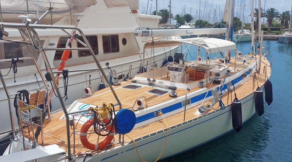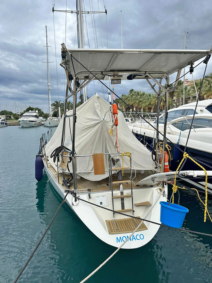 GEMM sails now under a Monaco flag. The VAT was paid by the former owner when he brought her to Spain in 1998.