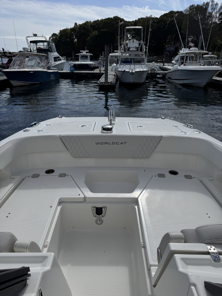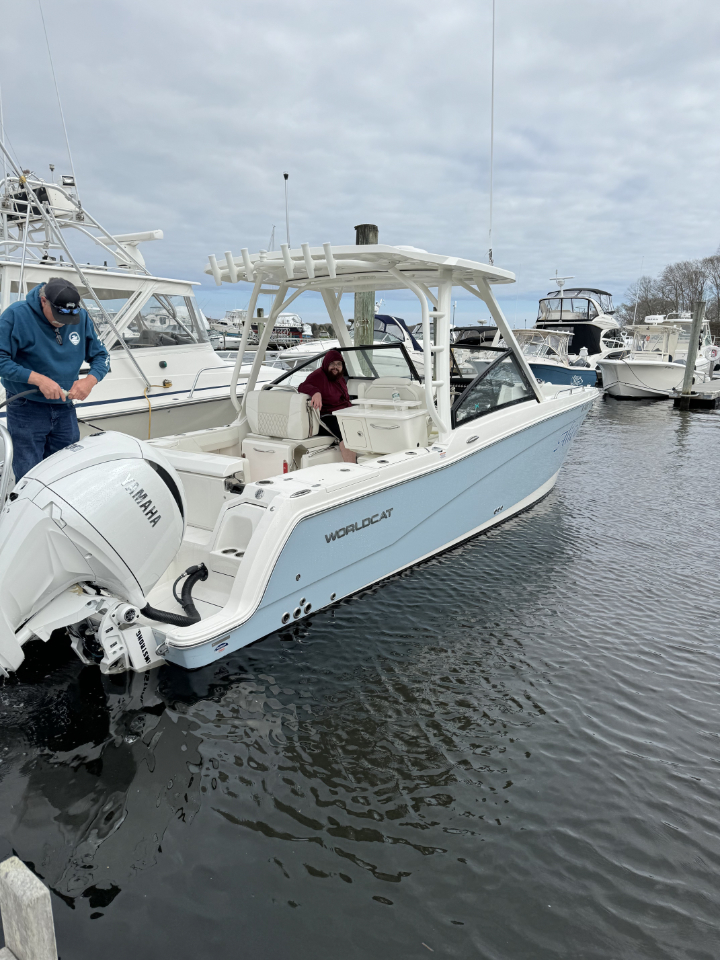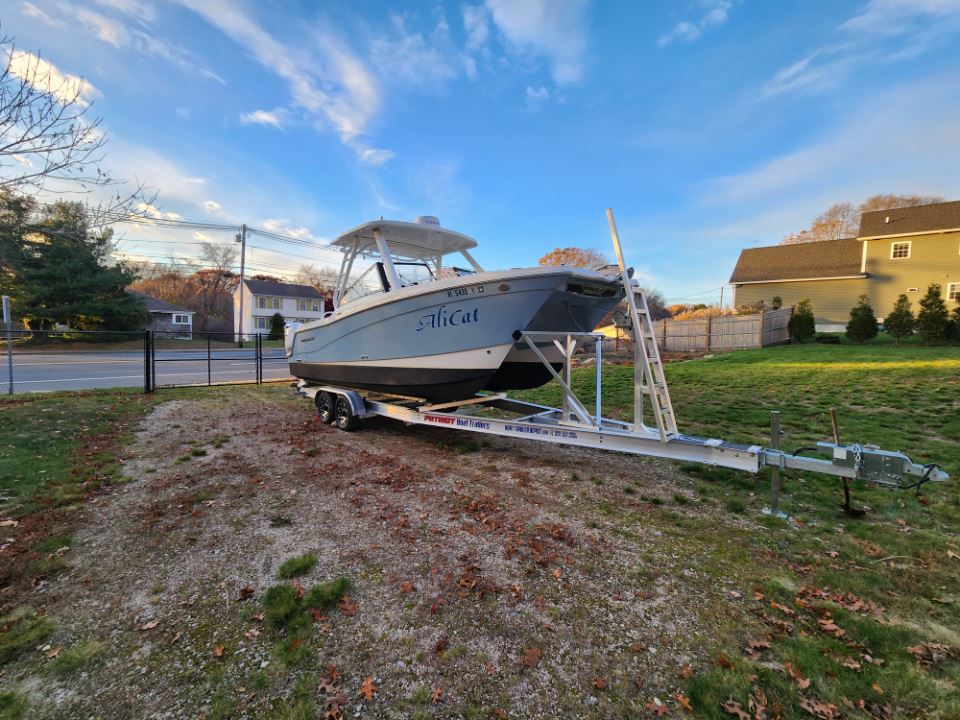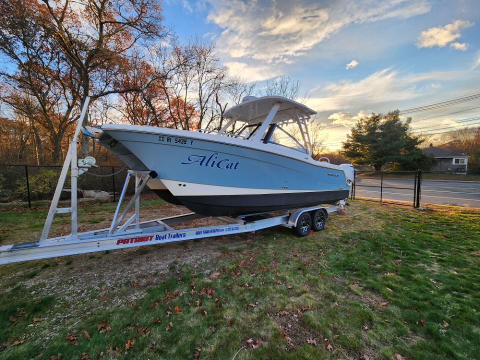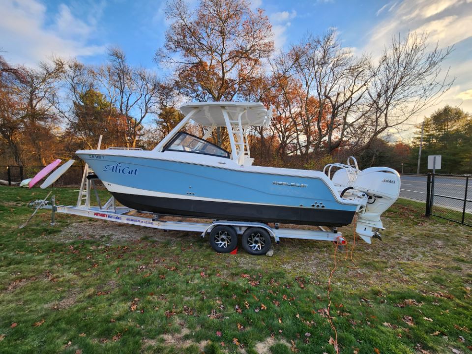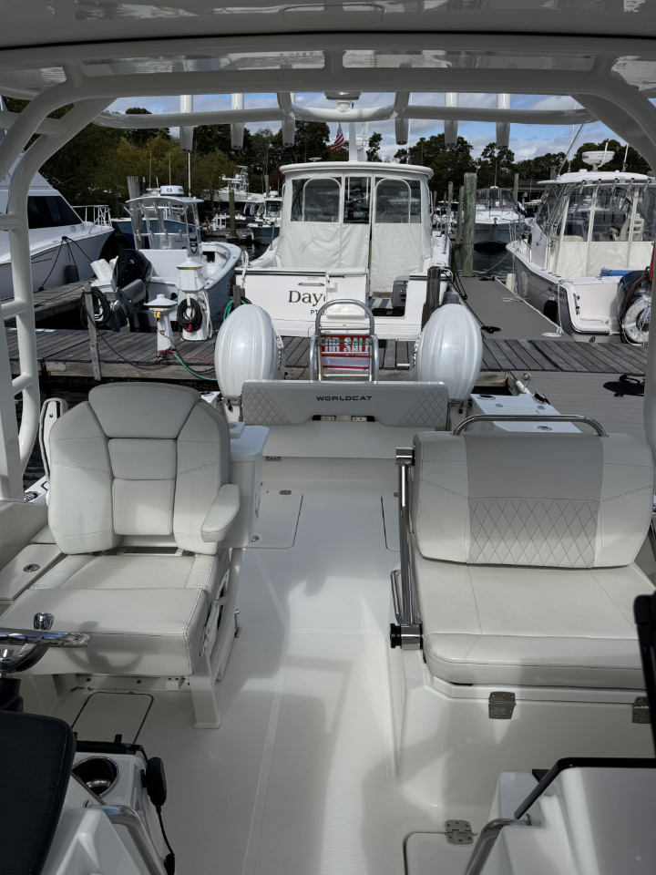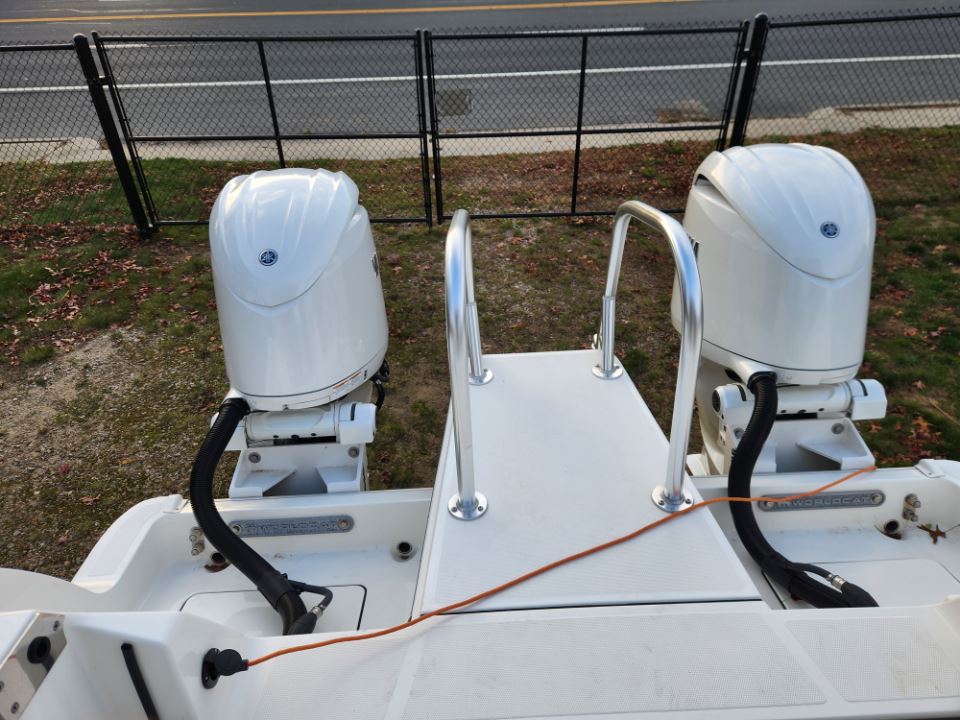 ALICAT is a well-equipped example of the popular World Cat 260 DC-X. She features twin Yamaha 200 hp outboards with optional joystick control for easy docking and dynamic positioning while fishing. With low hours, she shows like new. She also includes a custom tandem-axle trailer, a US$10,000 option.