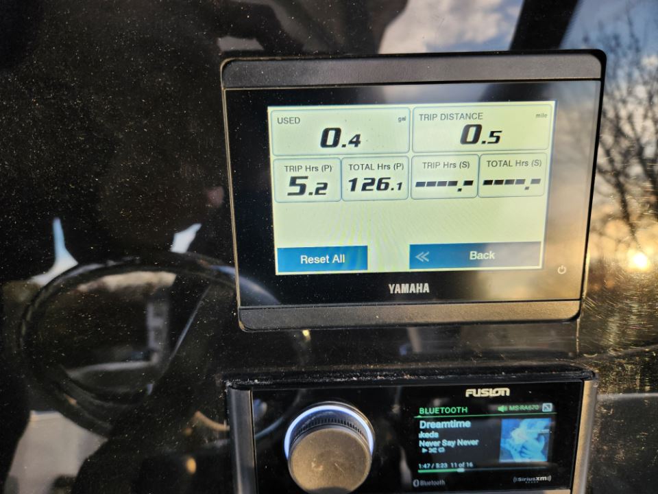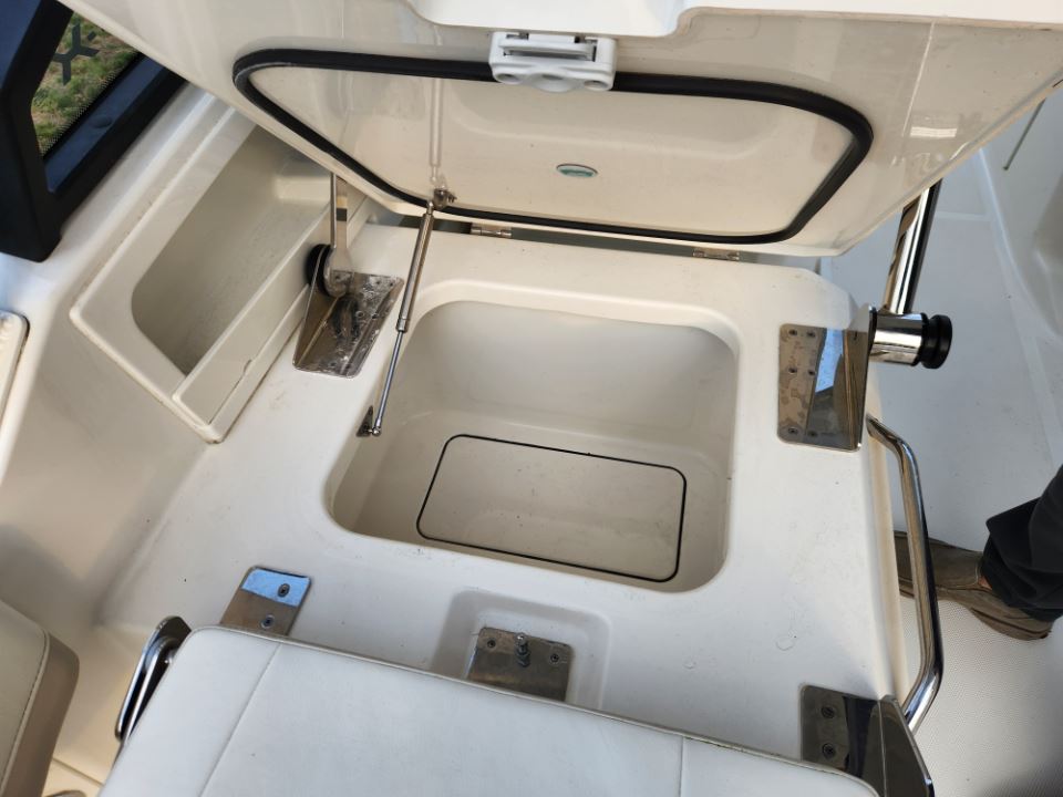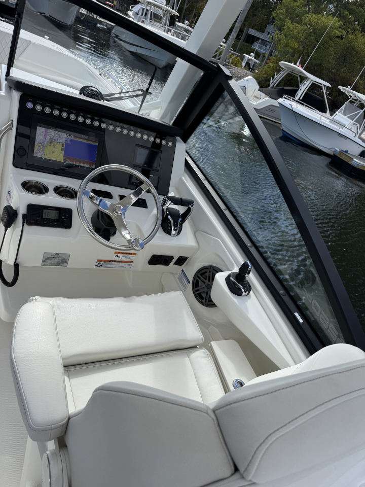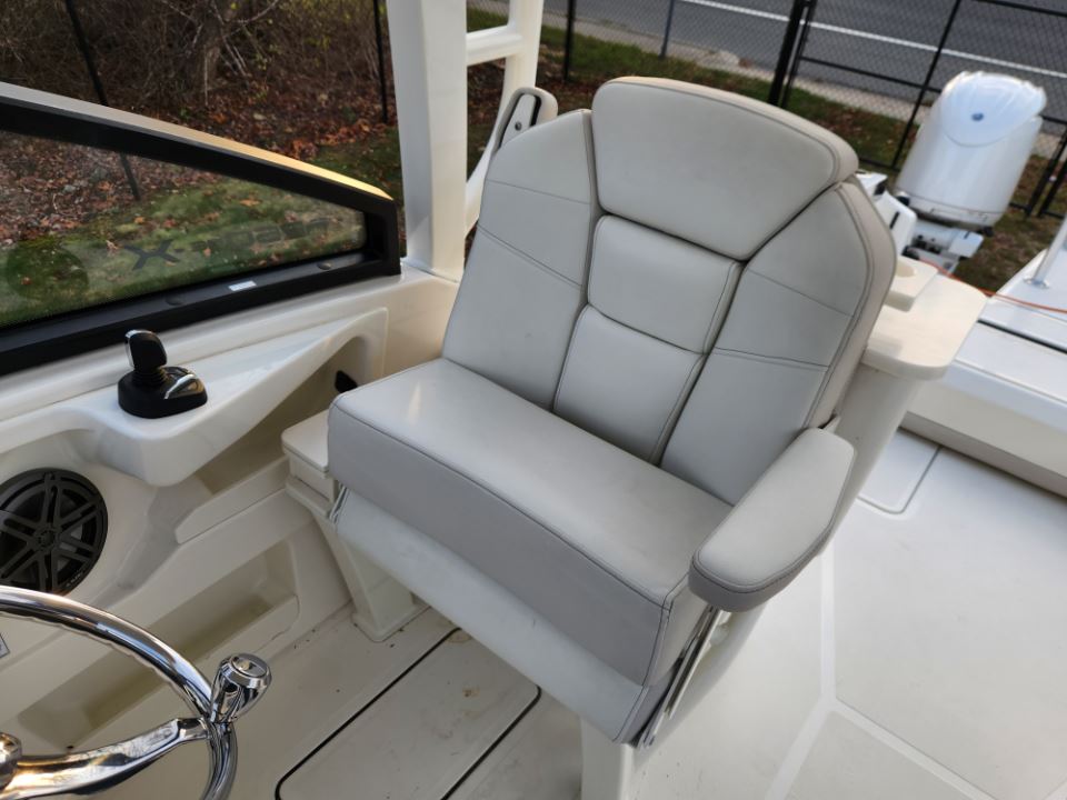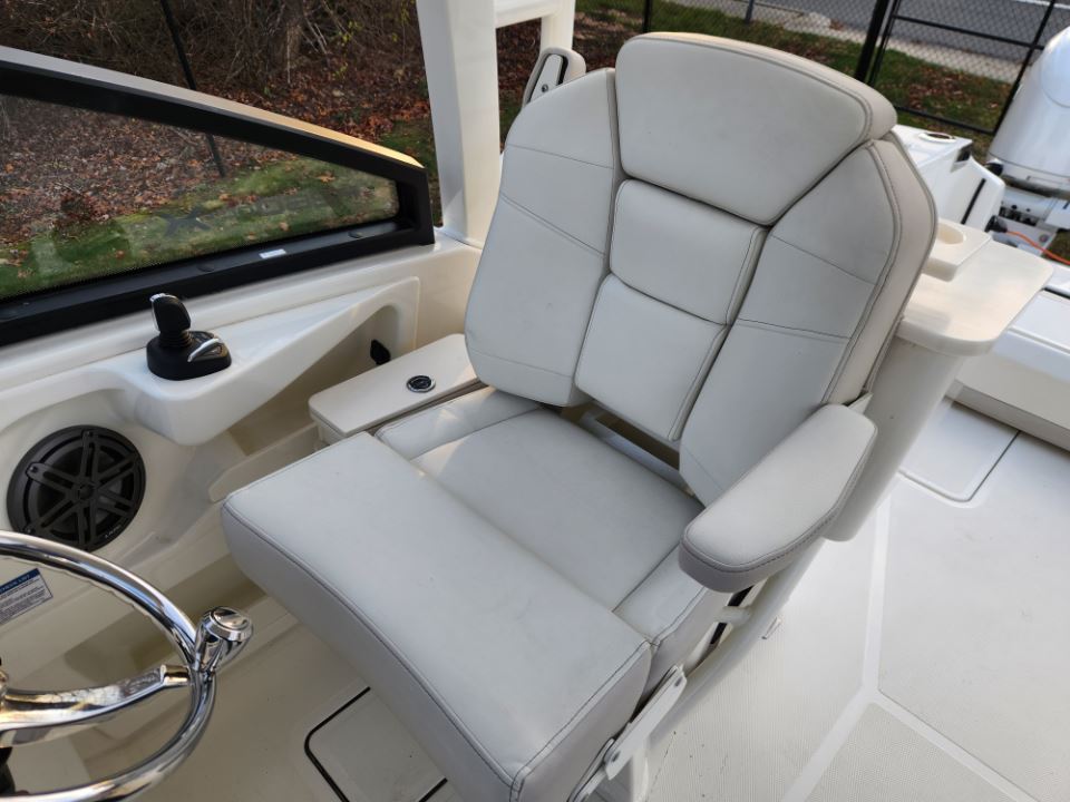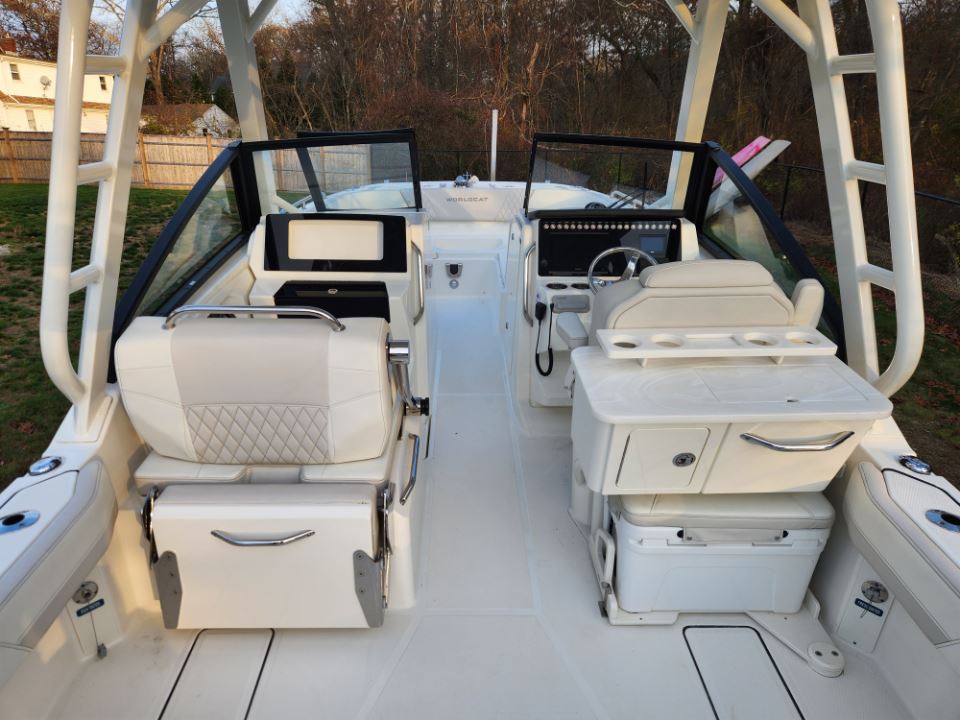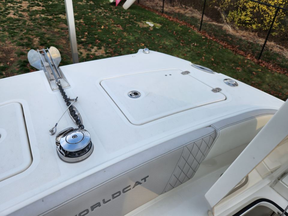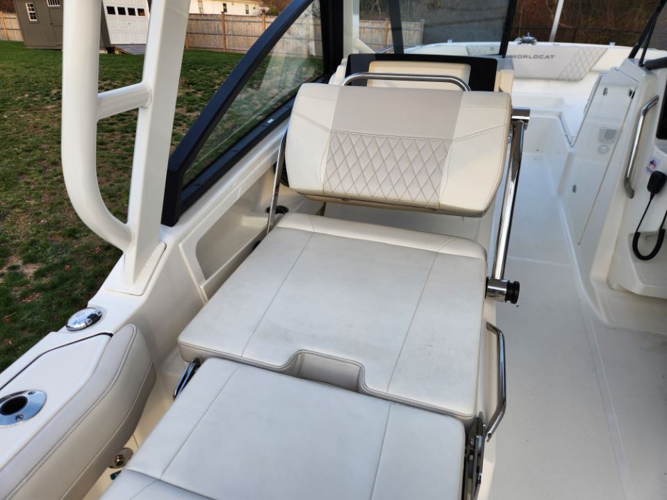 We love the build quality and the abundant design details, such as the ample storage, enclosed head, walk-through access to the bow, reversible seat backs, fold-down transom backrest, and the swing-out cooler. The catamaran hull is fast and stable. After two seasons of great fun, I’ve found that I’m not as mobile as I once was – hence the reason for the sale.